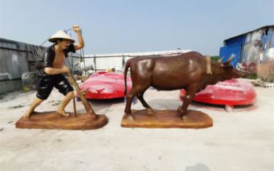 牛拉犁雕塑 玻璃鋼農耕文化雕塑
