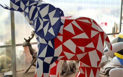 彩色幾何大象雕塑 不銹鋼大象模型